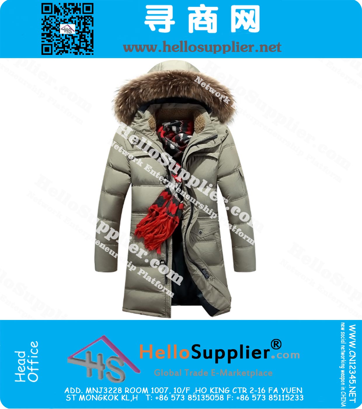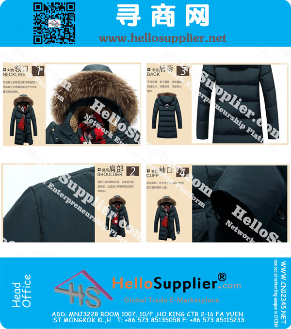 Outdoor Waterproof Down Jacket , 90% White Duck Down Coat , X-Long Men Winter Outerwear